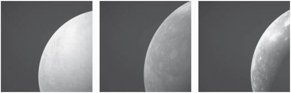 JUICE will spend almost five years studying Jupiter’s ocean-bearing moons. From left to right, JUICE will visit Callisto for multiple flybys, Europa for two flybys, and Ganymede for flybys and orbital insertion. Image Credit left to right: NASA/JPL/DLR; NASA/JPL/DLR; NASA/JPL.