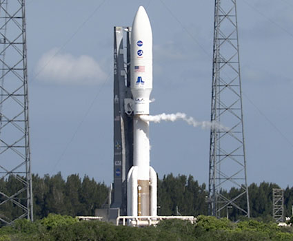 Juno soars skyward to Jupiter on Aug. 5, 2011 from launch pad 41 at