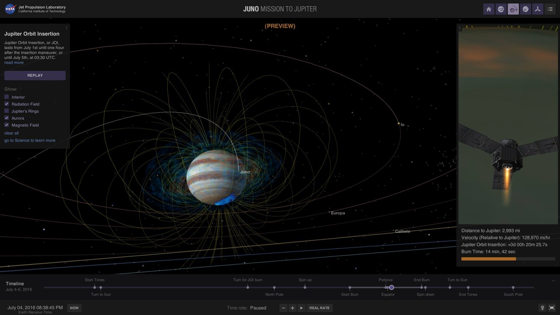 and most lethal radiation belts. On July 4, 2016, NASA's Juno spacecraft will plunge into