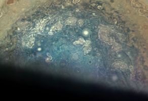 This image captures the swirling cloud formations around the south pole of Jupiter, looking up toward the equatorial region. NASA’s Juno spacecraft took the color-enhanced image during its eleventh close flyby of the gas giant planet on Feb. 7, 2018 at 7:11 a.m. PST (10:11 a.m. EST). At the time, the spacecraft was 74,896 miles (120,533 kilometers) from the tops of Jupiter’s clouds at 84.9 degrees south latitude. Citizen scientist Gerald Eichstädt processed this image using data from the JunoCam imager. This image was created by reprocessing raw JunoCam data using trajectory and pointing data from the spacecraft. This image is one in a series of images taken in an experiment to capture the best results for illuminated parts of Jupiter's polar region. To make features more visible in Jupiter’s terminator — the region where day meets night — the Juno team adjusted JunoCam so that it would perform like a portrait photographer taking multiple photos at different exposures, hoping to capture one image with the intended light balance. For JunoCam to collect enough light to reveal features in Jupiter’s dark twilight zone, the much brighter illuminated day-side of Jupiter becomes overexposed with the higher exposure. JunoCam's raw images are available for the public to peruse and process into image products at: More information about Juno is at: and here Image credits: NASA/JPL-Caltech/SwRI/MSSS/Gerald Eichstädt