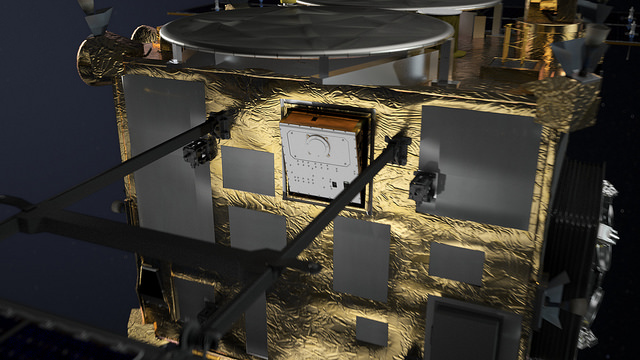 MASCOT the hopping robot attached to Hayabusa2 before deployment. Artist’s illustration. Image Credit: DLR (CC-BY 3.0)