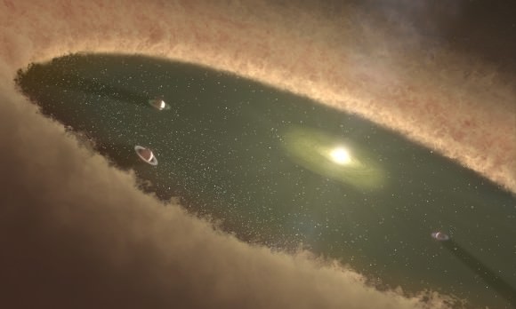 An artist’s illustration of a bright young star shining in its proto-solar disk. Hayabusa 2’s samples could help shed light on conditions in the early Solar System. Credit: NASA/JPL-Caltech