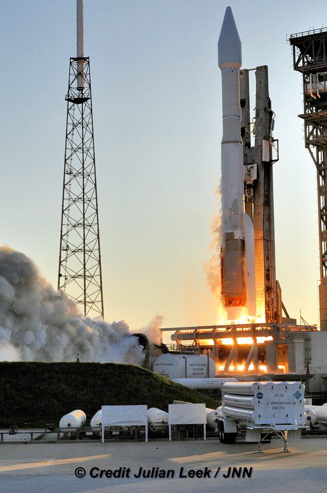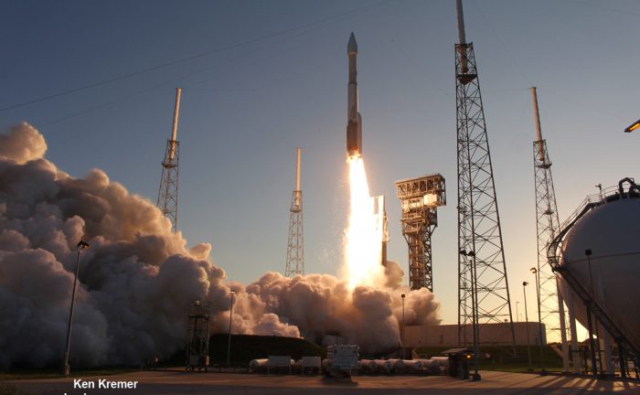 A United Launch Alliance Atlas V rocket lifts off from Space Launch Complex 41 at Cape Canaveral Air Force Station carrying NASA’s