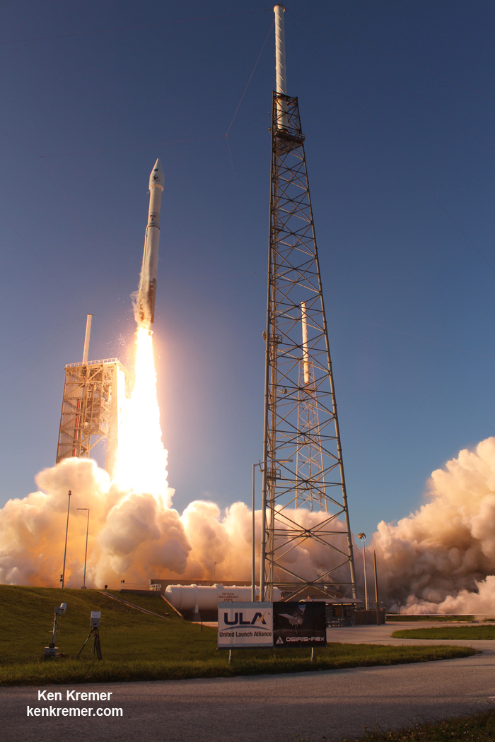 Blastoff of NASA’s OSIRIS-Rex asteroid sampling spacecraft on September 8, 2016 from Cape Canaveral Air Force Station, FL