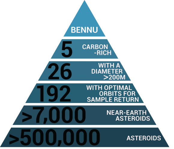The OSIRIS-REx target selection pyramid. Image Credit: NASA/Goddard Space Flight Center.