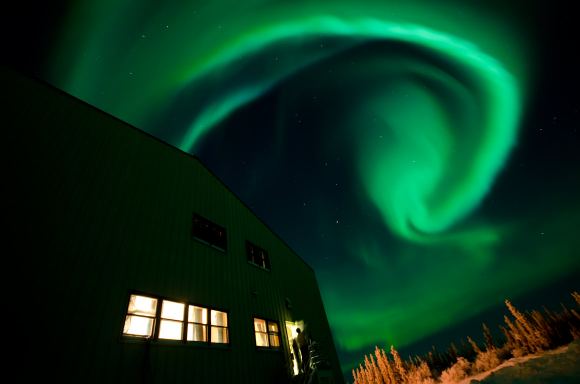 Spectacular image of a swirling aurora in the night sky. Credit – Jason Ahrns