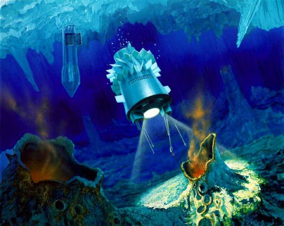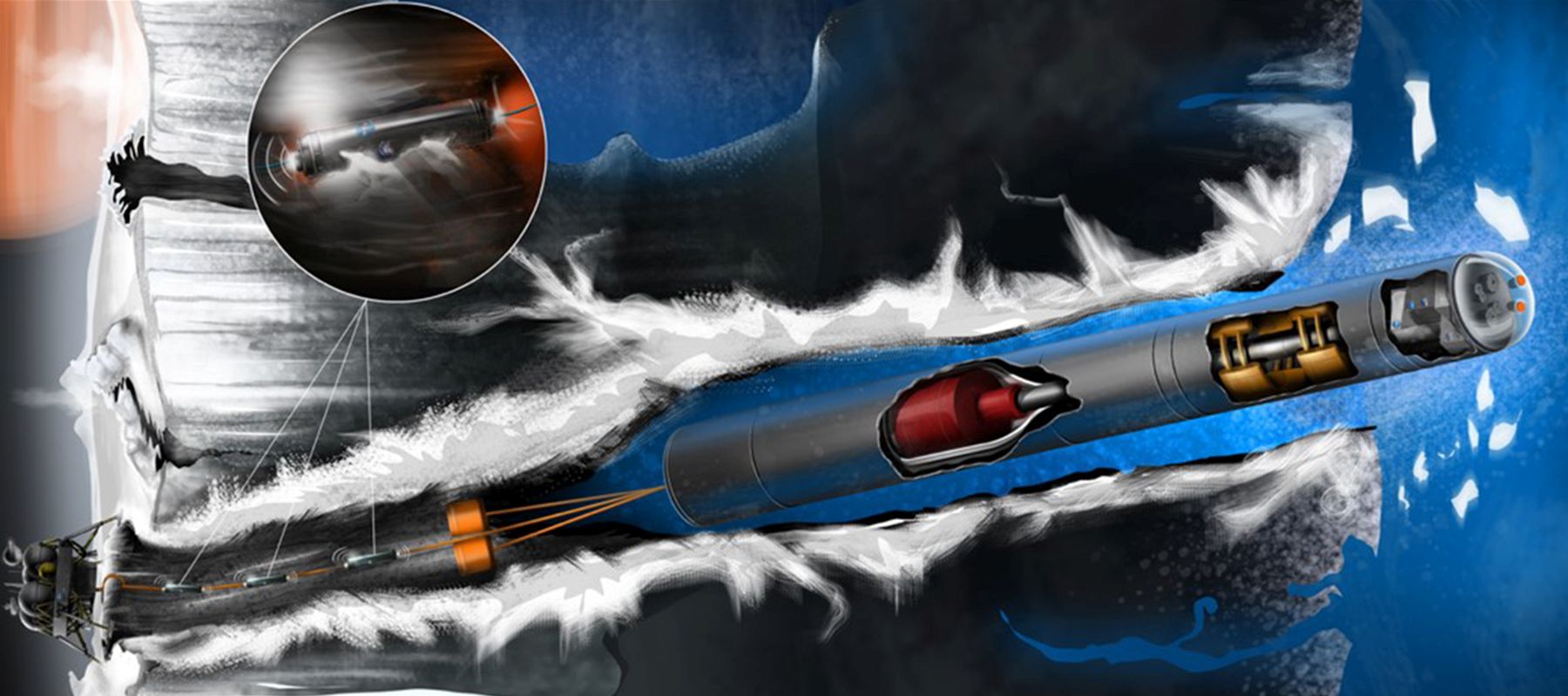 Artist’s impression of a hypothetical ocean cryobot (a robot capable of penetrating water ice) in Europa. Credit: NASA
