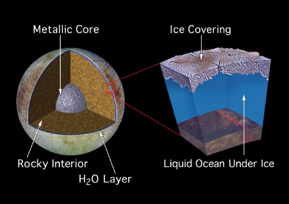 Artist’s impression of Europa’s interior, based on data obtained by Galileo space probes Credit: NASA