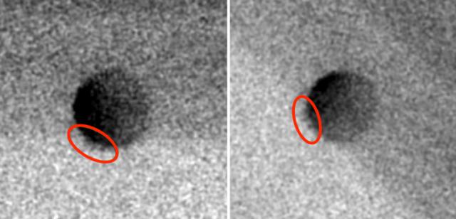 (Suspected plumes of water vapor spouting out of Jupiter's moon Europa.Hubble/NASA/STScI/Business Insider) Those blotchy "dark fingers," circled in red, are the suspected plumes.