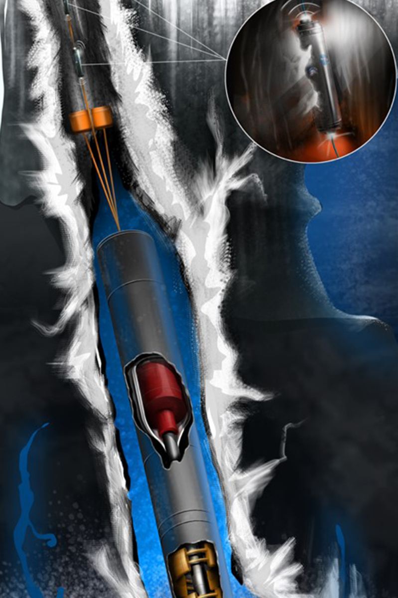 Artist’s rendering of the Europa “tunnelbot.” (Credit: Alexander Pawlusik, LERCIP Internship Program NASA Glenn Research Center)