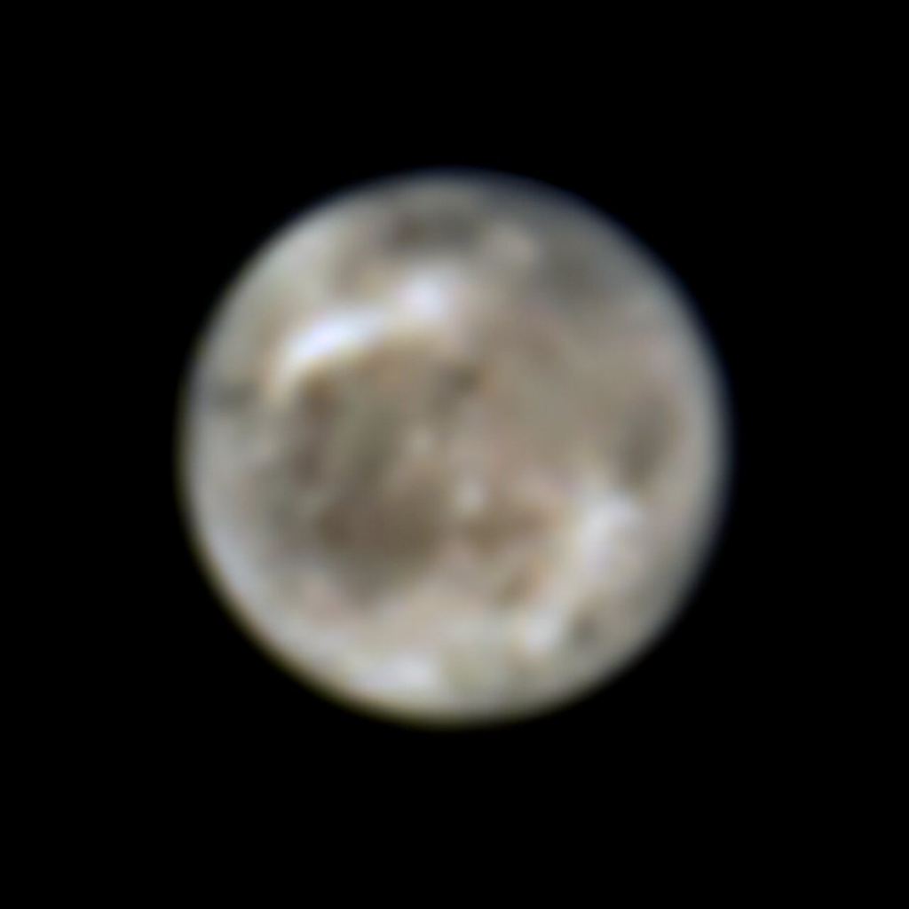 Ganymede seen by JunoCam. The image is derived from a raw PJ34 JunoCam image, decompanded and stretched in a linear way in order to remove dark and to improve contrast moderately. Subtle blur and sharpening applied to enhance perception of detail a bit. Credit : NASA / JPL / SwRI / MSSS / Gerald Eichstädt