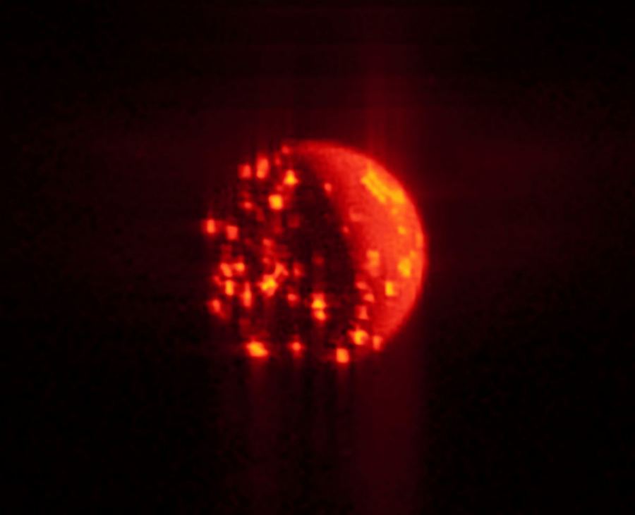 Image captured by Juno’s Stellar Reference Unit (SRU) camera shortly after Io was eclipsed by Jupiter at 12:40:29 (UTC) Dec. 21, 2018. Credit: NASA/JPL-Caltech/SwRI