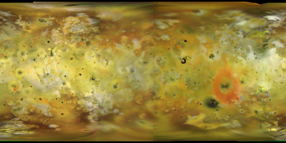 Global view of Jupiter’s moon Io, obtained during the tenth orbit of Jupiter by NASA’s Galileo spacecraft. Credit: NASA