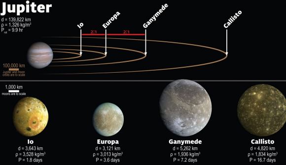 Jupiter’s orbital system with the host planet and orbits to scale. Image credit: James Tuttle Keane / Keck Institute for Space Studies