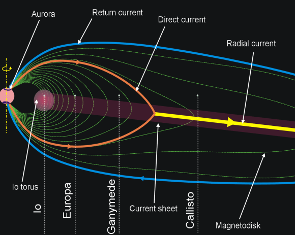The magnetic field of Jupiter and co-rotation enforcing currents. Credit: Wikipedia Commons/Ruslik0