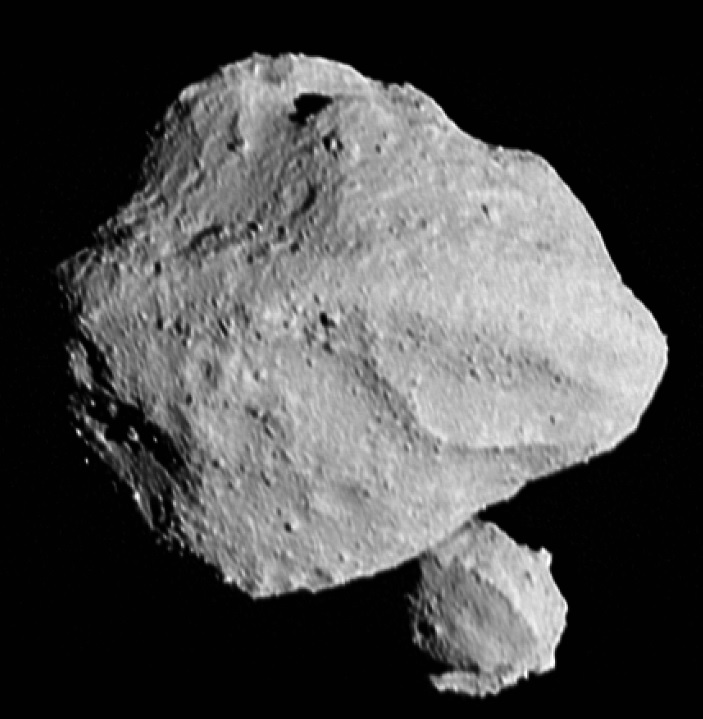 Asteroid Dinkinesh and its satellite companions, the "kissing moons". These appear to be a contact binary. Courtesy NASA/JPL/SW