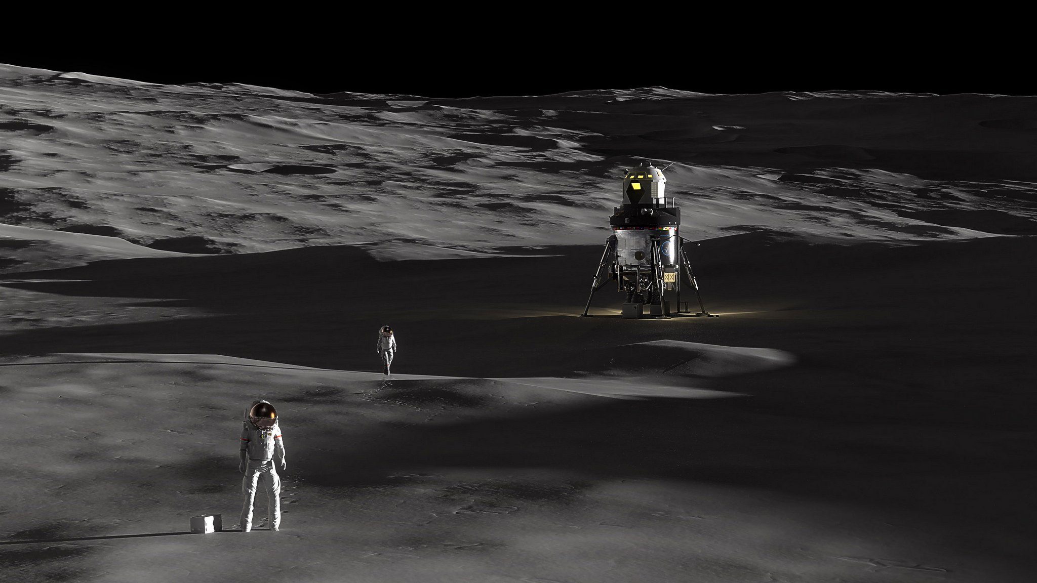 Artist’s concept of the lunar lander and crew on the lunar surface. Credit: Lockheed Martin