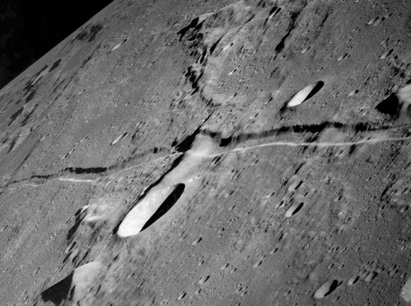 Rima Ariadaeus, a linear rile (a surface channel thought to be formed by lava) on the Moon?s surface,