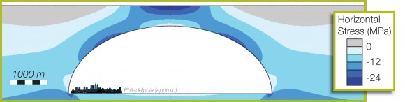 Artist’s impression of a lava tube measuring several kms wide, with the city of Philadelphia shown inside for scale: