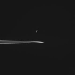 A beautiful view of the night side of a crescent Enceladus, lovingly lit by Saturnshine.