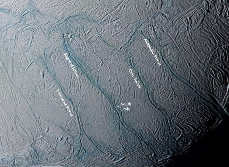 Enceladus’ Tiger Stripes. (Credit: NASA/JPL/Space Science Institute)