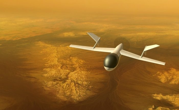 The Aerial Vehicle for In-situ and Airborne Titan Reconnaissance (AVIATR) concept for an aerial explorer for Titan. Credit: Mike Malaska
