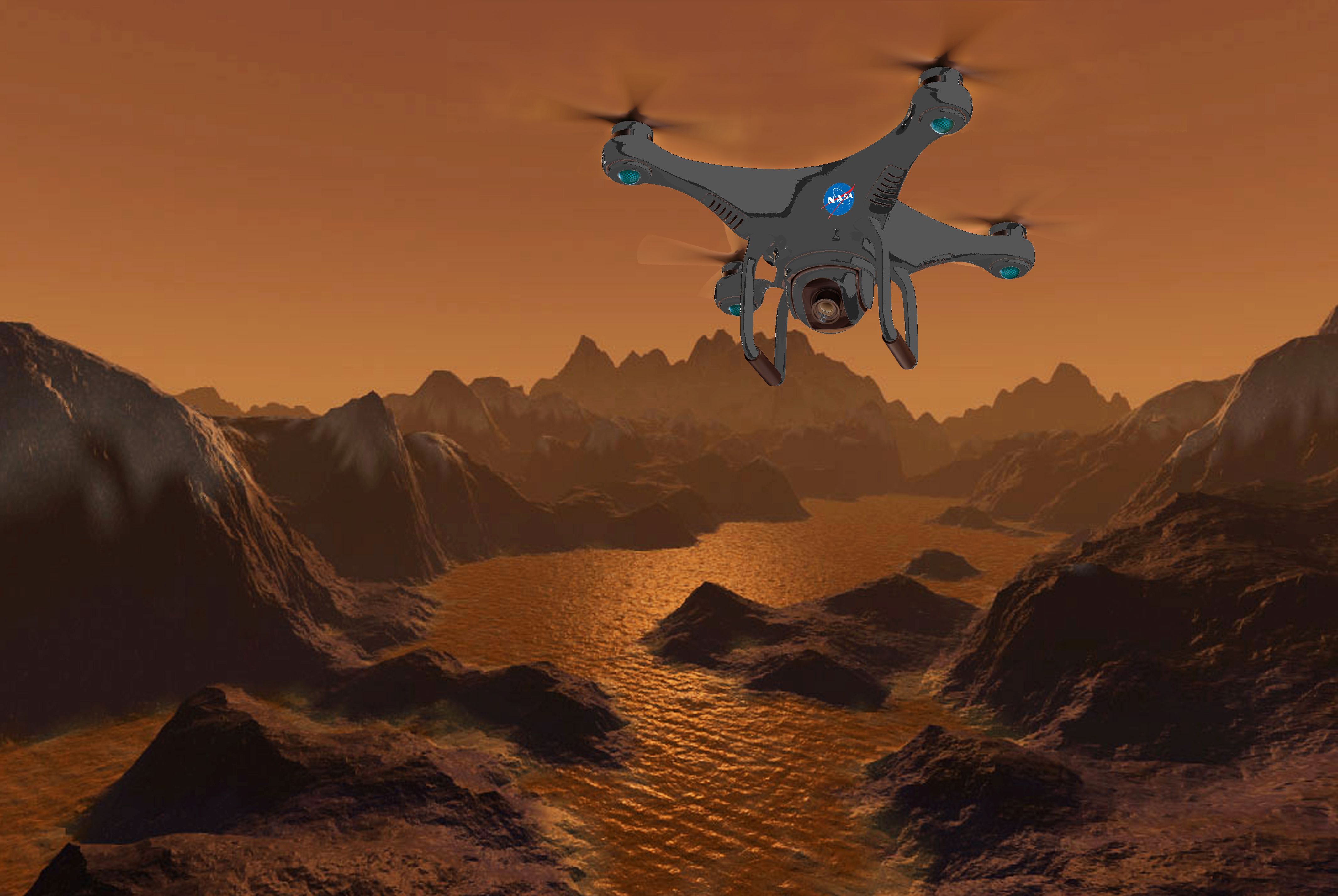 Artist’s concept of the Titan Aerial Daughtercraft (TAD) flying above one of Titan’s methane lake. Credit: NASA