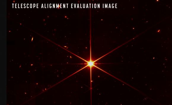 A JWST engineering image of the star 2MASS J17554042+6551277, uses a red filter to optimize visual contrast. Credits: NASA/STScI