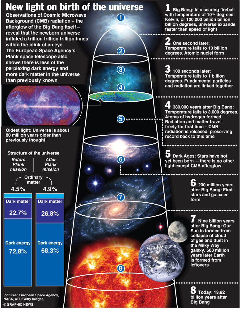 This illustration shows the evolution of the Universe, from the Big Bang on the left, to modern times on the right. Credit: NASA