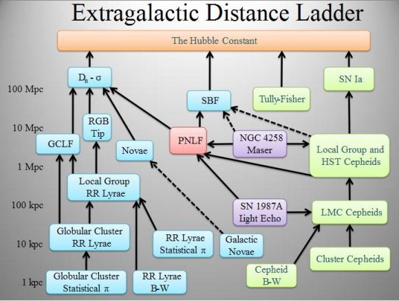 Various methods of cosmic distance measure. Credit: Wikipedia user Brews O’Hare