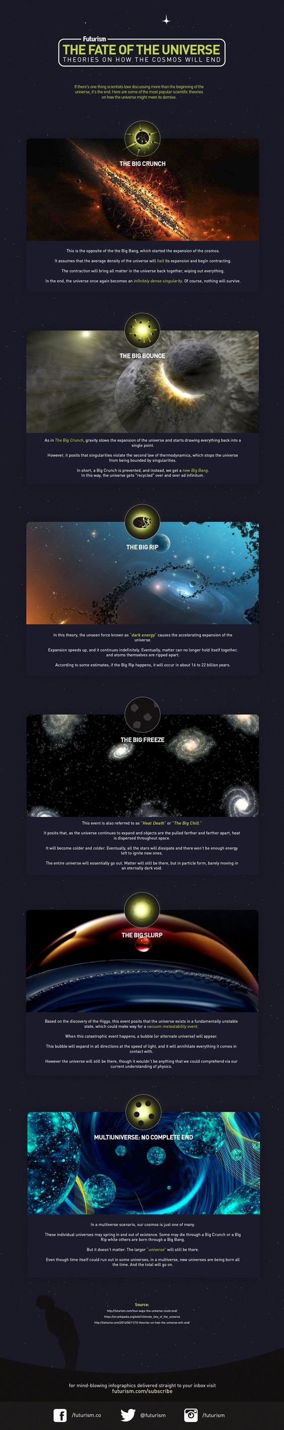 From futurism.com" Scientists are fairly certain that, one day, our universe will come to an end. Here's how they think this might happen.