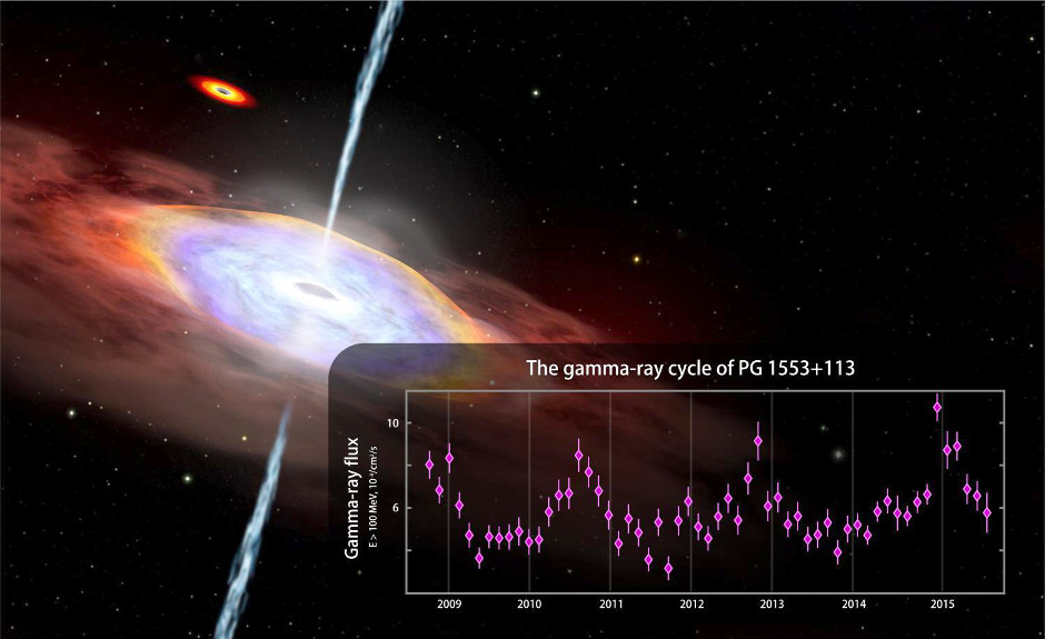 Background: One possible explanation for the gamma-ray cycle is an oscillation of the jet produced by the gravitational pull
