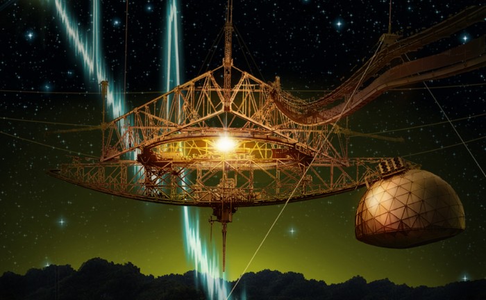 A fast radio burst detected in 2012 by the Arecibo Observatory has scientists searching for its source.