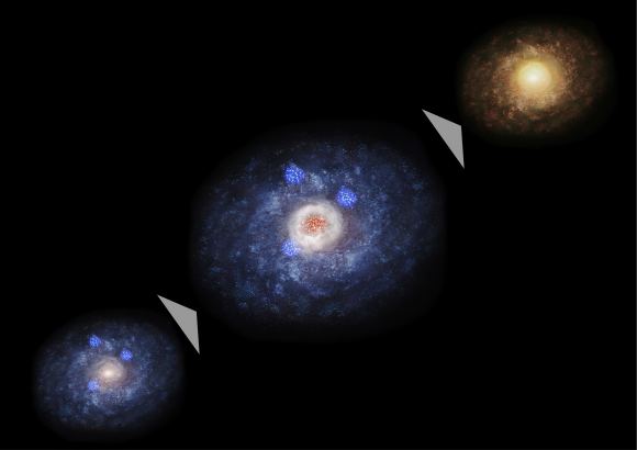 ABOUT THIS IMAGE: This graphic illustrates how a vibrant, star-forming galaxy quickly transforms