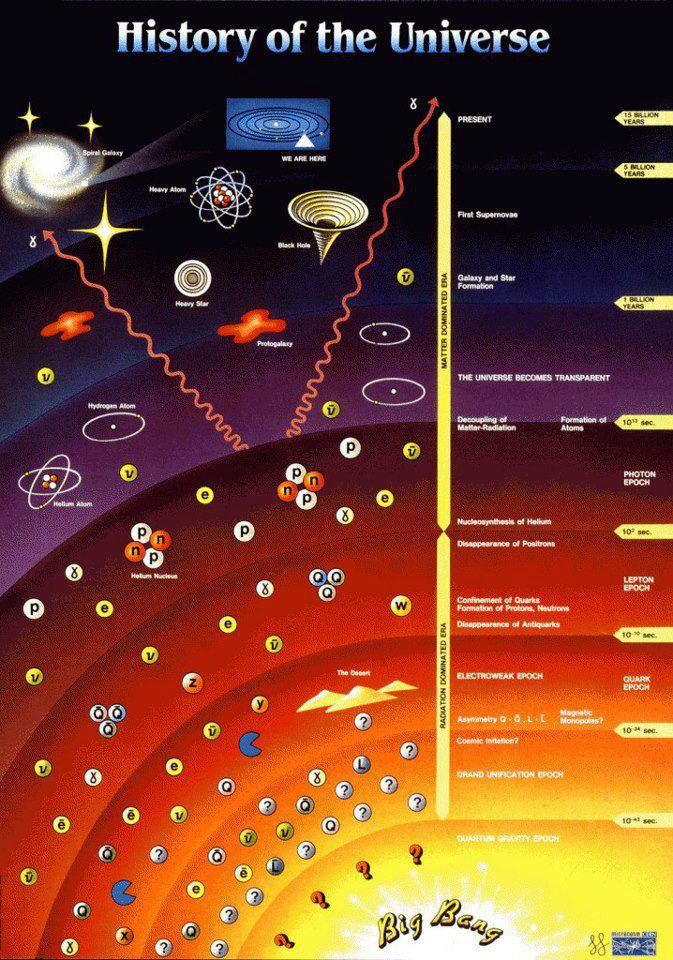 Diagram of evolution of the (observable part) of the universe from the Big Bang (left), the CMB-reference afterglow, to the present. Image Credit: By NASA/WMAP Science Team – Original version: NASA; modified by Cherkash, Public Domain,
