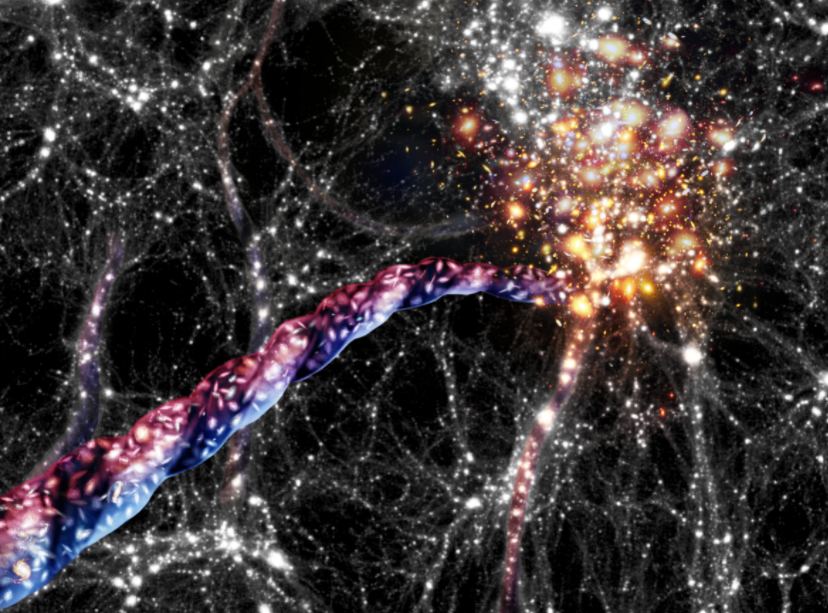 A composite image showing the magnetic fields of the cosmic web. Credit: Vernstrom et al