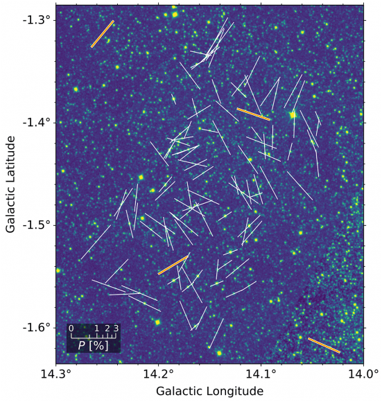 White lines show the complex structure of magnetic fields in our galaxy. Credit: Doi, et al