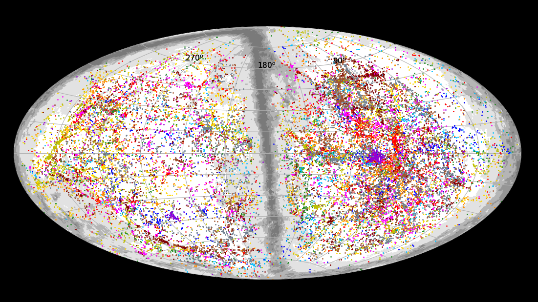 A map of the sky shows Cosmicflows-4's 56,000 galaxies. (Image credit: University of Hawaii)
