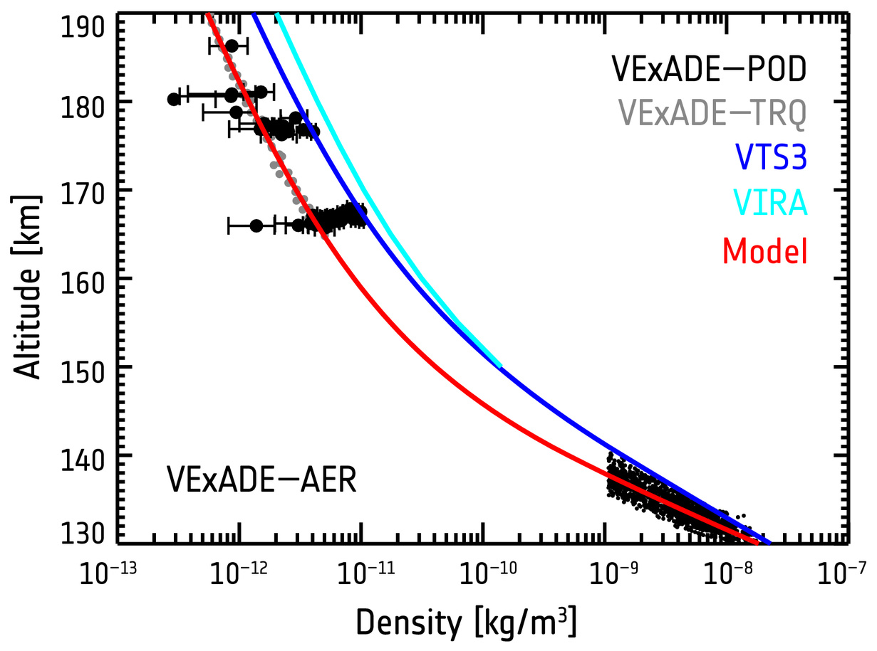 Density profiles of Venus’ polar atmosphere. Figure credit: courtesy of I. Müller-Wodarg (Imperial College London, UK).