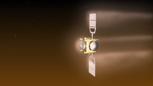 Artist’s impression of Venus Express performing aerobreaking maneuvers in the planet’s atmosphere in June and July 2014. Credit: ESA–C. Carreau