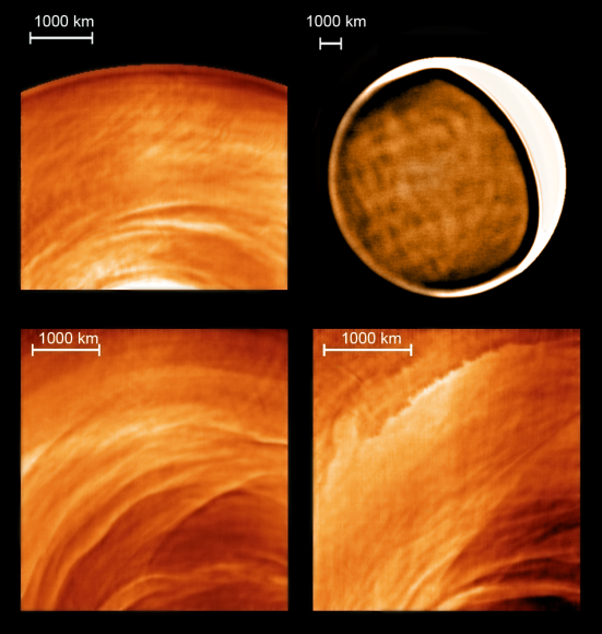 Examples of new types of cloud morphology discovered on the night side of Venus thanks to Venus Express (ESA) and the infrared telescope IRTF (NASA). Credits: ESA/NASA/J. Peralta and R. Hueso.