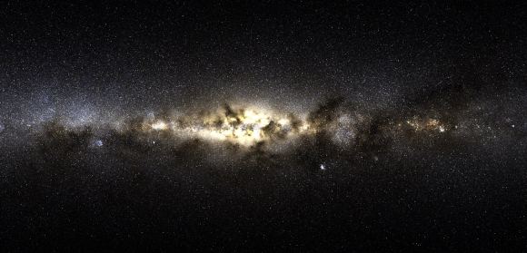 The all-sky view that the Gaia survey would have of a simulated Milky-Way-like galaxy. Credit: Sanderson et a