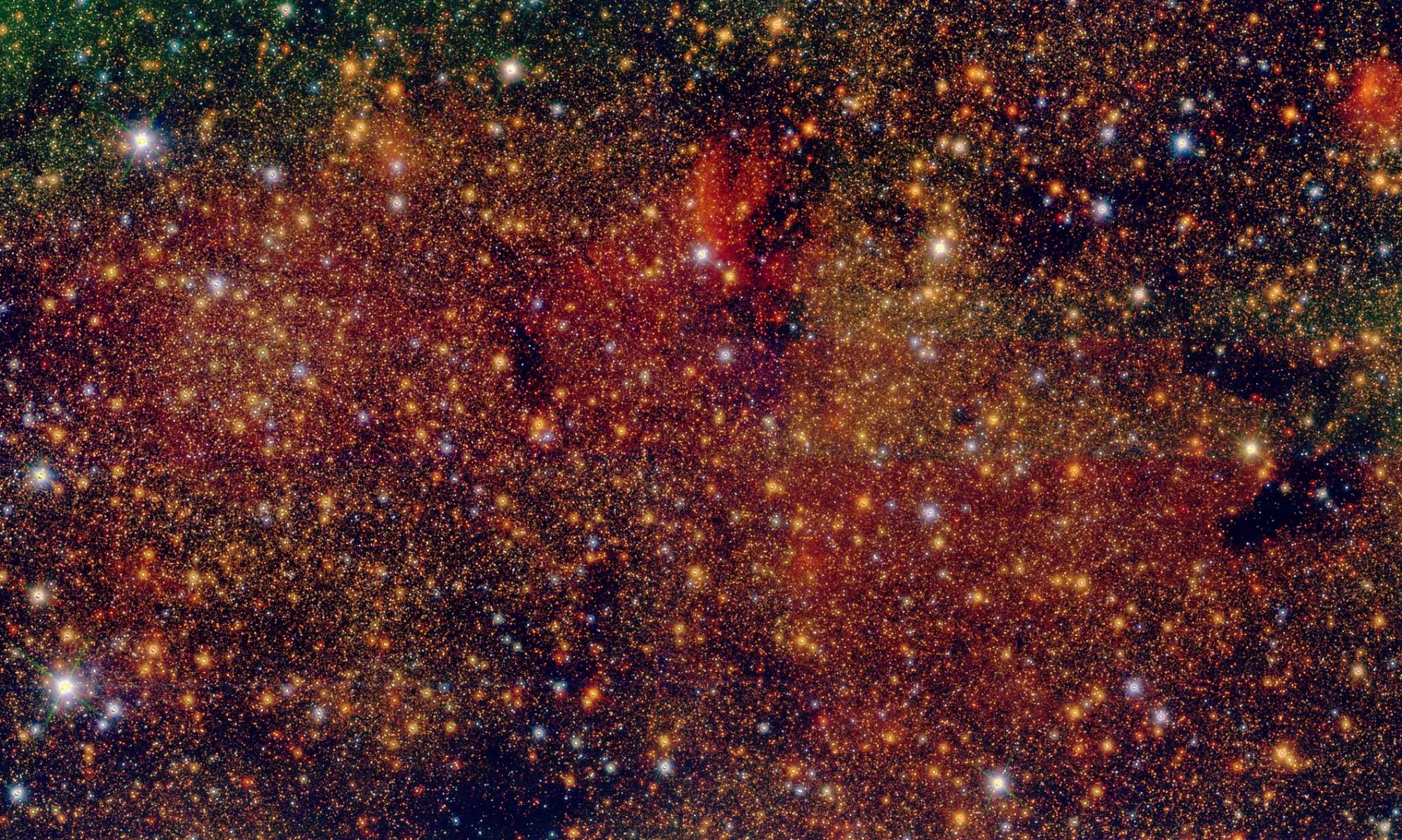 False-color image of the region Sagittarius B1, as seen by the GALACTICNUCLEUS survey. Credit & ©: F. Nogueras-Lara et al. / MPIA