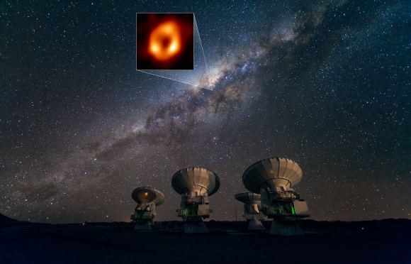 The Atacama Large Millimeter/submillimeter Array (ALMA) looked at Sagittarius A*, (image of Sag A* by the EHT Collaboration) to study something bright in the region around Sag A*. Credit: ESO/José Francisco Salgado