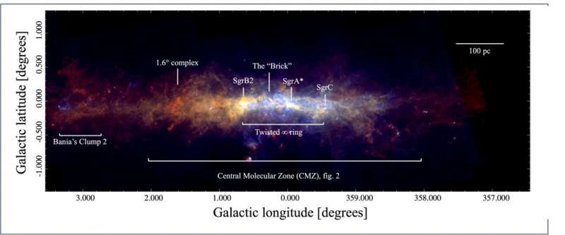 Top panel: HiGAL column density map of the CMZ.from Phys.org