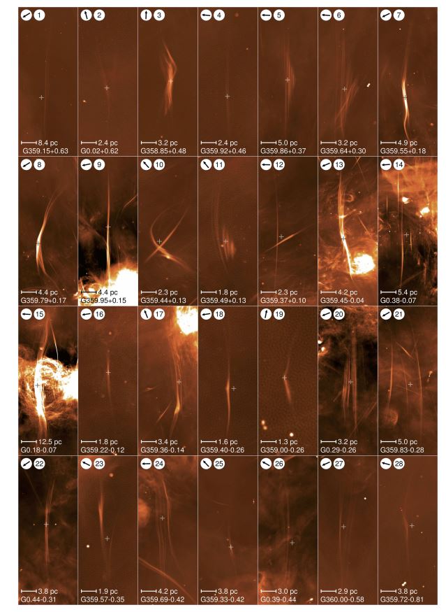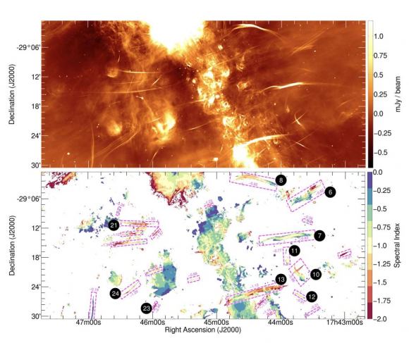 Numerous filaments spanning the Galactic plane. The filaments are identified in the lower panel “Spectral Index” Credit Heywood et al Figure 9
